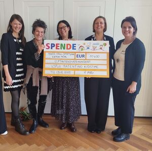 Außerordentlich freuen wir uns über die Spende der Maier-Stoll-Stiftung. Den symbolischen Scheck in Höhe von 11.400 Euro hat Katrin Möhl während der Feier an das Patentino-Team übergeben. Ein herzliches Dankeschön dafür. Dieses Geld ermöglicht den vorläufigen Fortbestand unseres Präventionsangebots Kidstime.